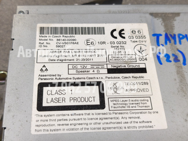 Магнитола Toyota Auris 2012г 8614002090 Привезли из Англии